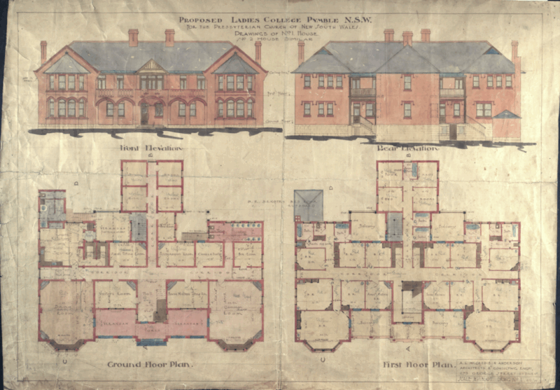 The architectural plans for the College were hand drawn in 1914 and the College opened in 1916 with just 3 buildings onsite – the Colonnade and the first two boarding houses. These were originally called First and Second House and were later renamed to become Marden and Lang. There were 60 students at the time of opening – 40 of whom were day girls and 20 of whom were boarders.
